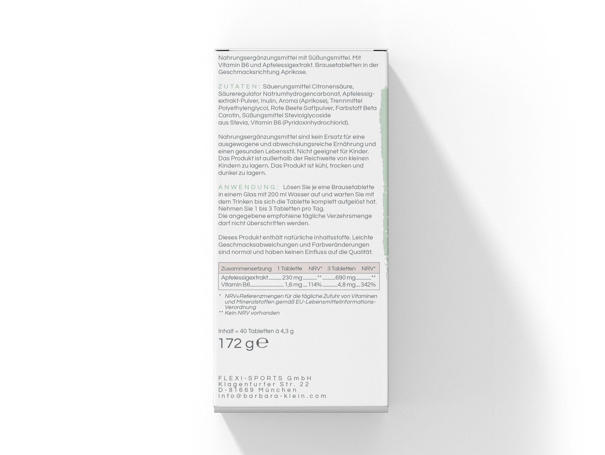 » 1 Brausetablette in 250–500 ml Wasser auflösen und genießen.